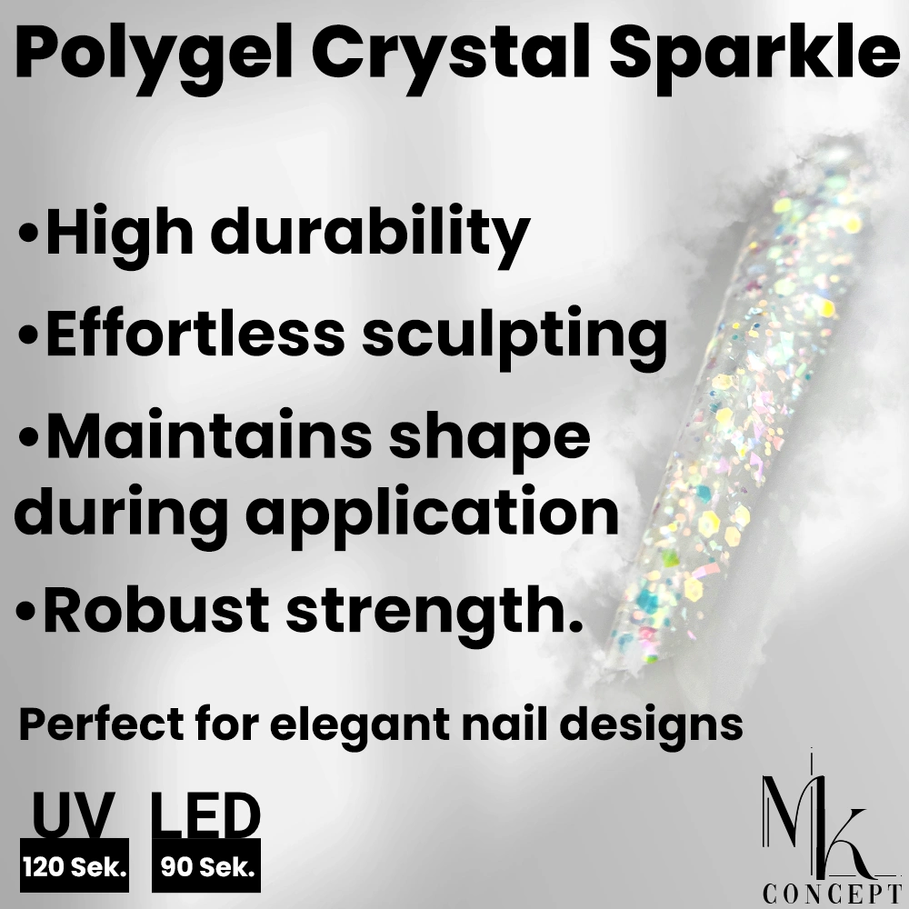 Polygel Crystal Sparkle 15g by MK Concept brings a new level of elegance and ease to your manicure routine. Its enhanced formula provides a premium experience, enabling you to create high-impact nail designs effortlessly. This versatile polygel is ideal for nail construction, repairs, and maintenance, delivering strength and beauty in every application.